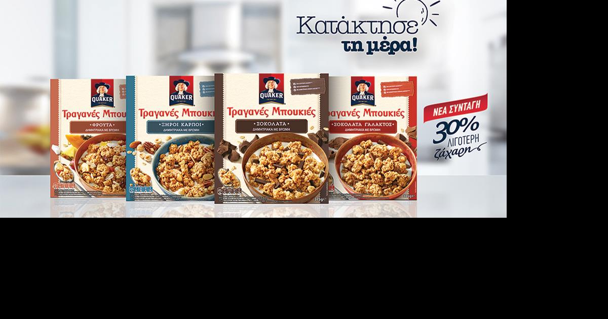 Με την νέα τους συνταγή και την υπέροχή τους γεύση, οι νέες Τραγανές Μπουκιές Quaker αποτελούν την ιδανική επιλογή για ένα νόστιμο και ισσοροπημένο πρωινό, για να κατακτάμε την κάθε μας μέρα με τη δύναμη της βρώμης!