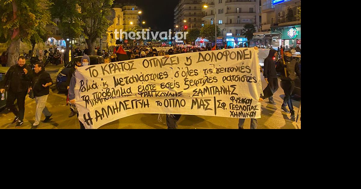 Πορεία διαμαρτυρίας για τον θάνατο του νεαρού στη Βοιωτία από πυροβολισμό αστυνομικού, έπειτα από καταδίωξη, πραγματοποιούν αυτήν την ώρα αντιεξουσιαστές στο κέντρο της Θεσσαλονίκης.