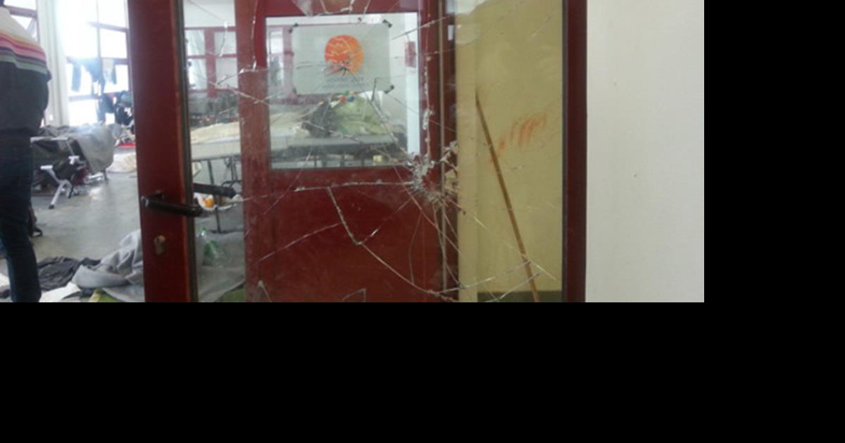 Όπως δείχνουν οι φωτογραφίες από το vimaonline.gr από τη συμπλοκή των μεταναστών προκλήθηκαν ζημιές στο γήπεδο του χόκεϊ.