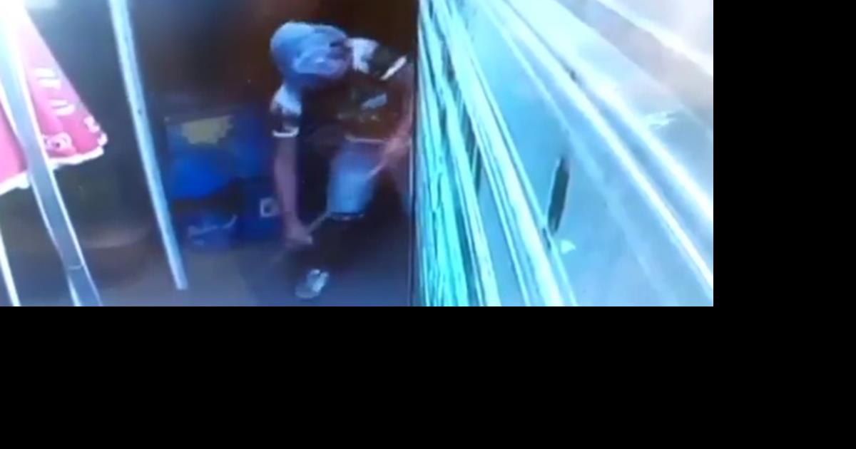 Όπως φαίνεται στα πλάνα που δημοσιεύει το zarpanews.gr, ο επίδοξος ληστής σπάει το περίπτερο για να αρπάξει ό,τι μπορεί.