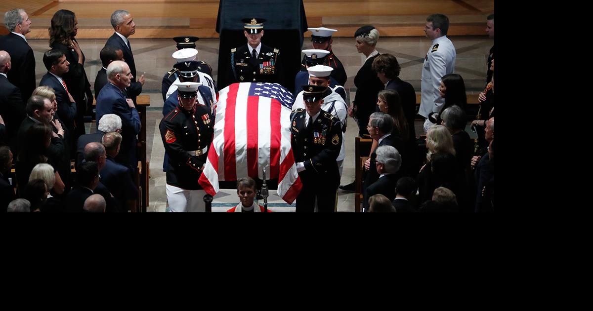 Οι πρώην πρόεδροι Μπαράκ Ομπάμα και Τζορτζ Ου. Μπους εκφώνησαν τους επικήδειους για τον Ρεπουμπλικανό πολιτικό και πρώην αιχμάλωτο πολέμου στο Βιετνάμ, που ήταν γνωστός σε όλους για τον αντικομφορισμό του και την ικανότητά του να ξεπερνά τα κομματικά όρια. Στην τελετή στον καθεδρικό ναό της Ουάσιγκτον μίλησαν επίσης ο πρώην υπουργός Εξωτερικών Χένρι Κίσινγκερ, 95 ετών, καθώς και παλιοί φίλοι και συνάδελφοι του Μακέιν.