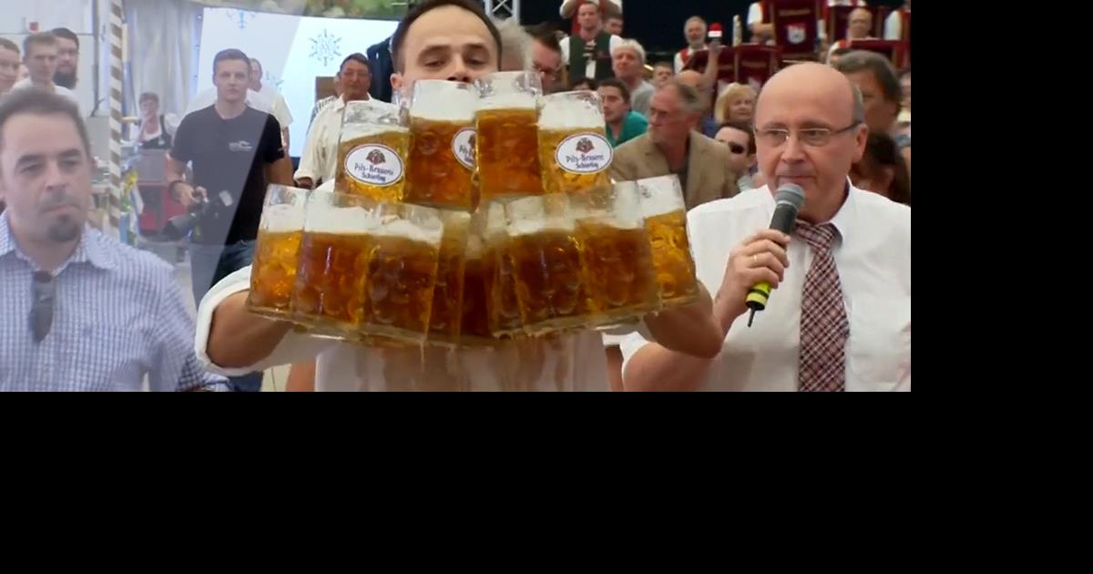 Για πολλούς ανθρώπους το να κουβαλάς έστω και δύο ποτήρια του λίτρου μπίρας αποτελεί άθλο. Όμως οι Γερμανοί είναι γνωστό ότι έχουν αδυναμία στο «εθνικό ποτό» τους. Έτσι την Κυριακή ένας Γερμανός έσπασε παγκόσμιο ρεκόρ κουβαλώντας 27 γεμάτες κούπες μπίρας.