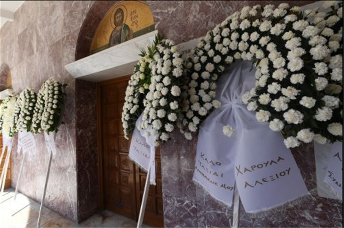 Από νωρίς το πρωί, στην εκκλησία κατέφθασαν στεφάνια στη μνήμη του από συνεργάτες, φίλους και ανθρώπους που τον αγαπούσαν και τον θαύμαζαν. Μεταξύ των αποστολέων βρίσκονται: Η υπουργός πολιτισμού και αθλητισμού Λίνα Μενδώνη, η Χαρούλα Αλεξίου, η δισκογραφική εταιρία MINOS EMI, το Γυάλινο Μουσικό Θέατρο και ο Γιώργος Κατσαρός.
