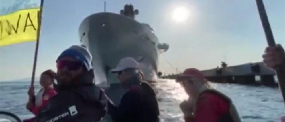 Ουκρανοί διαμαρτυρήθηκαν εν πλω, στην Αλικαρνασσό, αντιδρώντας στον ελλιμενισμό του πολυτελούς γιότ του Ρόμαν Αμπράμοβιτς.
