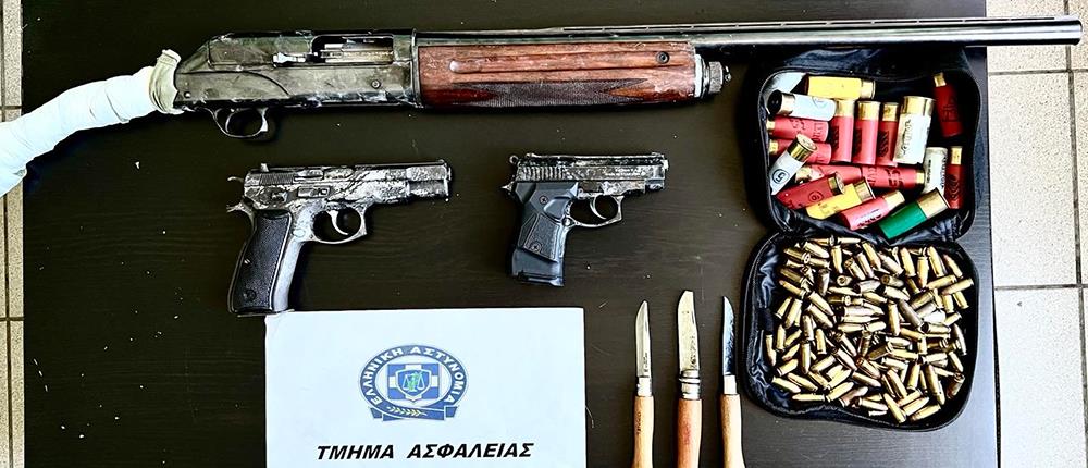 Κατασχέθηκαν 2 πιστόλια, κυνηγετική καραμπίνα, 155 φυσίγγια και 3 αναδιπλούμενοι σουγιάδες