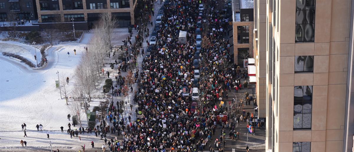 TODAY: Hundreds of thousands in Minnesota braved -10°F weather to march through downtown Minneapolis as part of the statewide general strike demanding ICE out of the Twin Cities. pic.twitter.com/LkvkxFztJI